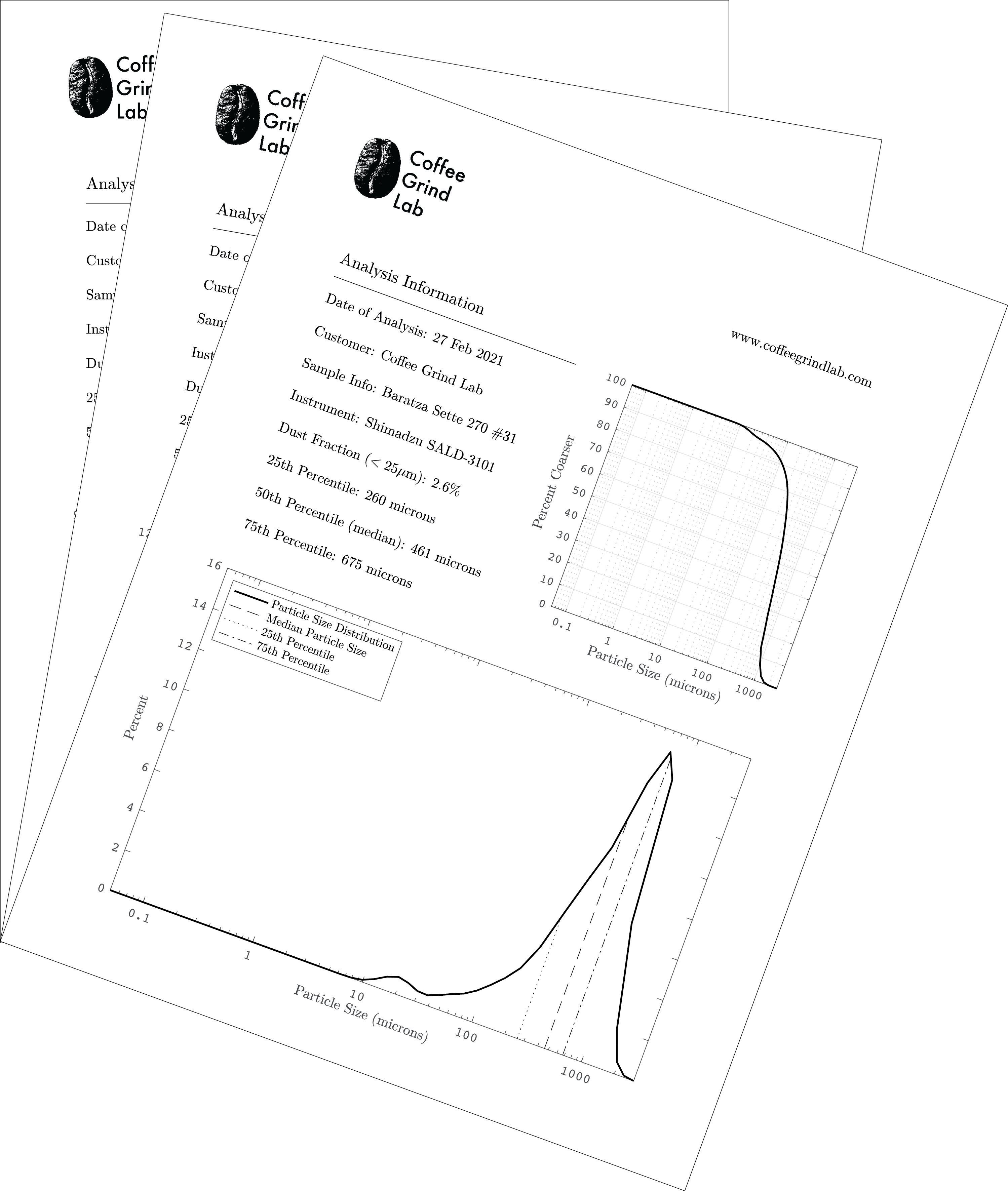 A complete particle-size distribution of your coffee grounds using our Shimadzu laser diffraction particle-size analyzer.